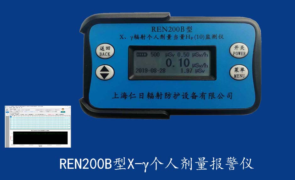 REN200型X、γ个人剂量报警仪(又叫X、γ辐射个人剂量当量HP(10)监测仪)内置高灵敏度盖格计数管为探测器,主要用来监测各种放射性工作场所中个人的X、γ以及硬β射线的辐射,具有响应快,测量范围宽的特点。能显示工作场所的剂量当量率和累积剂量,更换电池时,日期及累积数据能