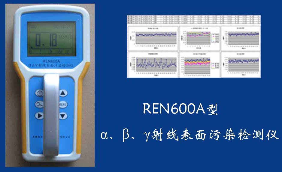 REN600Bα、β表面污染检测仪采用闪烁探测法,用来检测放射性工作场所和实验室的工作台面、地板、墙面、手、衣服、鞋等表面受α或β(γ)放射性污染的程度,也可对密封型α、β同位素泄漏水平进行检测。仪器具有较高的探测效率;此外通过配套的 RenRiRate辐射剂量管理软件可将存储的数据读